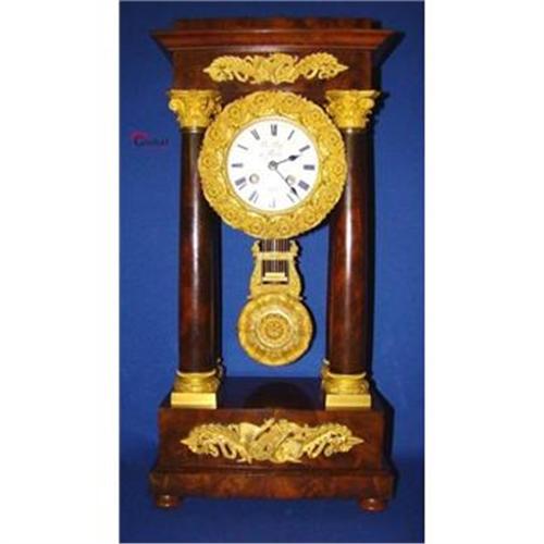 </font></strong>THIS RARE ANTIQUE PORTICO CLOCK IS ONE OF THE MOST INCREDIBLE CLOCKS YOU WILL LAY EYES ON!We are offering for sale this wonderful antique Portico clock recently acquired from a France estate in the South of France near Marseille.The clock is made of the finest Mahogany and has lovely bronze gilted ornaments.The style of this gorgeous portal clock is Napoleon III and the age is about 1870. These antique portal clocks are getting so hard to come by these days- especially in such perfect condition! Early French clockwork with bronze gilt pendulum on spring suspension, 8 days going work, the 1/1 and 1/2 hours striking on a silvered bell, good condition and good running/striking. Original wind-up key is included.The porcelain dial is signed with: "Le Roy a Paris-1878".