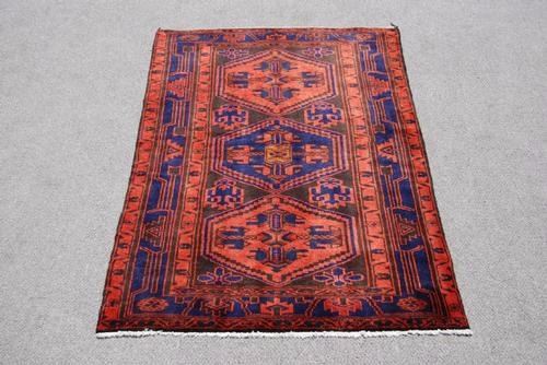 Fantastic handmade Persian Kurdish Kolyaee Rug. Made of fine quality baby lamb's wool pile on cotton foundation, all natural vegetable dye, this beautiful Rug incorporates a lovely set of tribal motifs on a red and navy blue background, with a center row of medallions and an intricately done multi layered border. Hand woven in City of Kolyaee from Iran. Size: 4 feet 3 inches X 6 feet 11 inches.