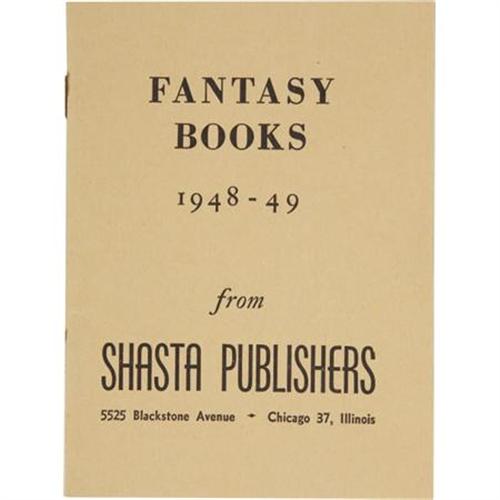 <B><I>Fantasy Books, 1948-49, from Shasta Publishers</B></I></B></I>. Chicago: Shasta Publishers, 1949. <BR>Twentyfourmo. 18 pages.<BR><BR>Paper binding with stapled covers. Staples have rusted. Overall fine.<BR><BR>This Shasta Publishers preview of forthcoming titles includes descriptions of John W. Campbell, Jr.'s <I>Who Goes There</B></I> (which was adapted for the 1951 film classic <I>The Thing from Another World</B></I>), L. Ron Hubbard's <I>Slaves of Sleep</B></I>, and Robert A. Heinlein's <I>Methuselah's Children</B></I>, as well as a listing of titles from other fantasy publishers. <I>From the Robert and Diane Yaspan Collection.</B></I><BR><BR><b>Shipping:</b> Books & Catalogs (<a target="_blank" href="http://www.heritageauctions.com/common/shipping.php">view shipping information</a>)
