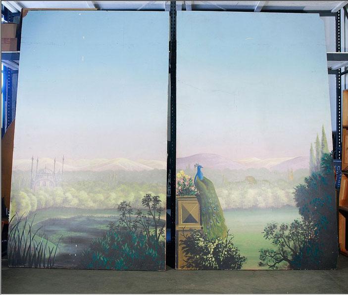 Fantasy Painting with Castle Scenic with Peacock in Foreground on 2 Panels 2010223.1 135 x 79 x 2.5 Each panel