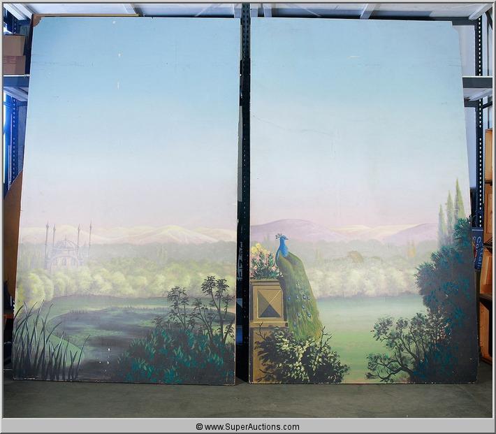 Fantasy Painting with Castle Scenic with Peacock in Forground on 2 Panels 2010223.1 135 x 79 x 2.5 Each panel