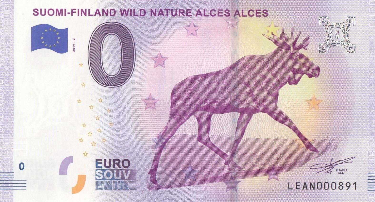 Fantasy banknotes, 0 Euro, 2018, UNC, Suami- Finland Wild Nature Alces Alcesbr/