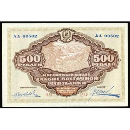 <style type="text/css"> body, td, th { font-family: Arial, Helvetica, sans-serif; font-size: 12px; color: #482424; margin: 0px; padding: 0px; } #header { background-image: url(http://www.bowersandmerena.com/ebay/images/template_v3_01.gif); clear: both; background-color: #590303; border-top-width: 2px; border-top-style: solid; border-top-color: #B38C4F; } #header #header_wrapper { height: 75px; clear: both; width: 800px; margin-right: auto; margin-left: auto; background-image: url(http://www.bowersandmerena.com/ebay/images/template_v3_03.gif); background-repeat: no-repeat; background-position: right; color: #F3EDCC; } #header #header_wrapper #header_logo { float: left; height: 75px; width: 444px; background-image: url(http://www.bowersandmerena.com/ebay/images/template_v3_02.gif); background-repeat: no-repeat; font-size: 10px; text-transform: capitalize; color: #B38C4F; } #header #header_wrapper #header_right { float: left; height: 75px; width: 356px; text-align: right; } #header #header_wrapper #header_right #headerLoginBtn { margin-bottom: 30px; } #header #header_wrapper #header_right input#txtSearch { color: #B49056; border: 1px solid #B49056; width: 175px; padding-top: 3px; padding-right: 3px; padding-bottom: 4px; padding-left: 3px; } #nav { height: 37px; background-image: url(http://www.bowersandmerena.com/ebay/images/template_v3_05.gif); clear: both; } #nav #nav_wrapper { height: 35px; width: 800px; margin-right: auto; margin-left: auto; border-left-width: 1px; border-left-style: solid; border-left-color: #B38C4F; } #nav #nav_wrapper a { padding-right: 15px; padding-left: 15px; border-right-width: 1px; border-right-style: solid; border-right-color: #B38C4F; height: 25px; padding-top: 10px; display: block; float: left; text-decoration: none; font-weight: bold; color: #5D0303; } #nav #nav_wrapper a:hover { color: #B38C4F; } #nav #nav_wrapper #search { float: right; padding-top: 7px; } #nav #nav_wrapper #search #txtSearch { font-family: Arial, Helvetica, sans-serif; font-size: 10px; text-transform: uppercase; color: #D2AE75; border: 1px solid #B38C4F; padding: 3px; } #content_bgd { background-image: url(http://www.bowersandmerena.com/ebay/images/template_v3_09.gif); background-repeat: repeat-y; background-position: center; padding-top: 15px; padding-bottom: 15px; background-color: #FBFBDB; } #content_wrapper { clear: both; height: auto; width: 800px; margin-right: auto; margin-left: auto; } .LotDetailWhite { line-height:normal; font-size:13px; font-family: arial,helvetica,sans-serif; color: White; font-weight: bold; } .LotDetailInformation { line-height:normal; font-size: 13px; font-family: arial,helvetica,sans-serif; } .LotDetailMessage { line-height:normal; font-size: 13px; font-family: arial,helvetica,sans-serif; color: red; } } tr.HeaderAuctionTitle td { color: #000000; font-weight: bold; padding: 2px; background-image: url(http://www.bowersandmerena.com/ebay/images/template_v3_05.gif); background-repeat: repeat-x; border-bottom-width: 1px; border-bottom-style: solid; border-bottom-color: #B38C4F; } table.AuctionSummary a, table.AuctionSummary a:link, table.AuctionSummary a:visited { color: #0000FF; text-decoration: none; } } td.tableHeaderLeft { border-left-width: 1px; border-left-style: solid; border-left-color: #B38C4F; } td.tableHeaderRight { border-right-width: 1px; border-right-style: solid; border-right-color: #B38C4F; } td.tableCellMiddle { border-left-width: 1px; border-left-style: solid; border-left-color: #B38C4F; border-right-width: 1px; border-right-style: solid; border-right-color: #B38C4F; padding: 5px; } tr.footer td { border-top-width: 1px; border-top-style: solid; border-top-color: #B38C4F; } </style> </head> <body> <div id="header"> <div id="header_wrapper"> <div id="header_logo"> </div> <div id="header_right"> </div> </div> </div> <div id="nav"> <div id="nav_wrapper"> <a href="http://www.bowersandmerena.com">Our eBayLive Auctions</a> <a href="#PaymentInfo">Payment Information</a> <a href="#ShippingInfo">Shipping Information</a> <a href="#About">About Bowers and Merena</a> </div> </div> <div id="content_bgd"> <div id="content_wrapper"> <table width="100%" border="0" cellpadding="5" cellspacing="0" class="AuctionSummary"> <tbody> <tr class="HeaderAuctionTitle" style="height: 25px;"> <td align="left" class="tableHeaderLeft" > </td> <td align="center" class="tableHeaderRight"> <span style="font-size: large;">Lot #2293. East Siberia. Far Eastern Republic, 1920 Second and Government Credit Note Issues.</span> </td> </tr> <tr> <td colspan="3" class="tableCellMiddle"> Lot of 6 notes. 3 are 1920 issues and include 500 Rubles, P-S1207; 2 copies of 1000 Rubles, P-S1208, all 3 in Unc. to CU condition and 3 additional small scrip notes of 10, 20 and 50 Kopeks, North Russia, 1919 ND Small Change Notes Issue, P-S131, P-S132 and P-S133, all in Unc.