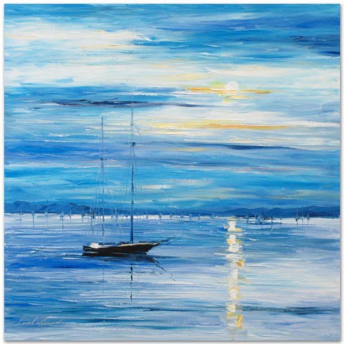 Leonid Afremov's masterful use of color and texture make his paintings unique collectibles that are sure to brighten any wall. "Far from Shore" is a limited edition giclee on canvas. The piece is numbered and bears the artist's authorized signature. This piece comes gallery wrapped. Includes Certificate of Authenticity! Measures approx. 21" x 21" (image).
