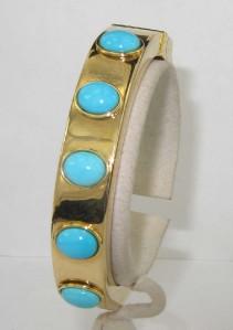 Faraone Mennella 18K Yellow Gold Turquoise Bangle. The total bangle's weight is 67.1 grams. The size of turquoise: 8 x 7 mm. The measurement of inside bangle: 55 x 47 mm. The bangle is 12 mm wide and 5 mm in thickness.