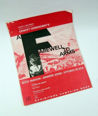 "A Farewell To Arms" was perhaps Ernest Hemingway's most autobiographical story about his own affair with a nurse when he was an ambulance driver during the war. This is a rare Exhibitor's Campaign Book from the classic 1957 feature starring Rock Hudson and Jennifer Jones. (Approx. 18" x 14").