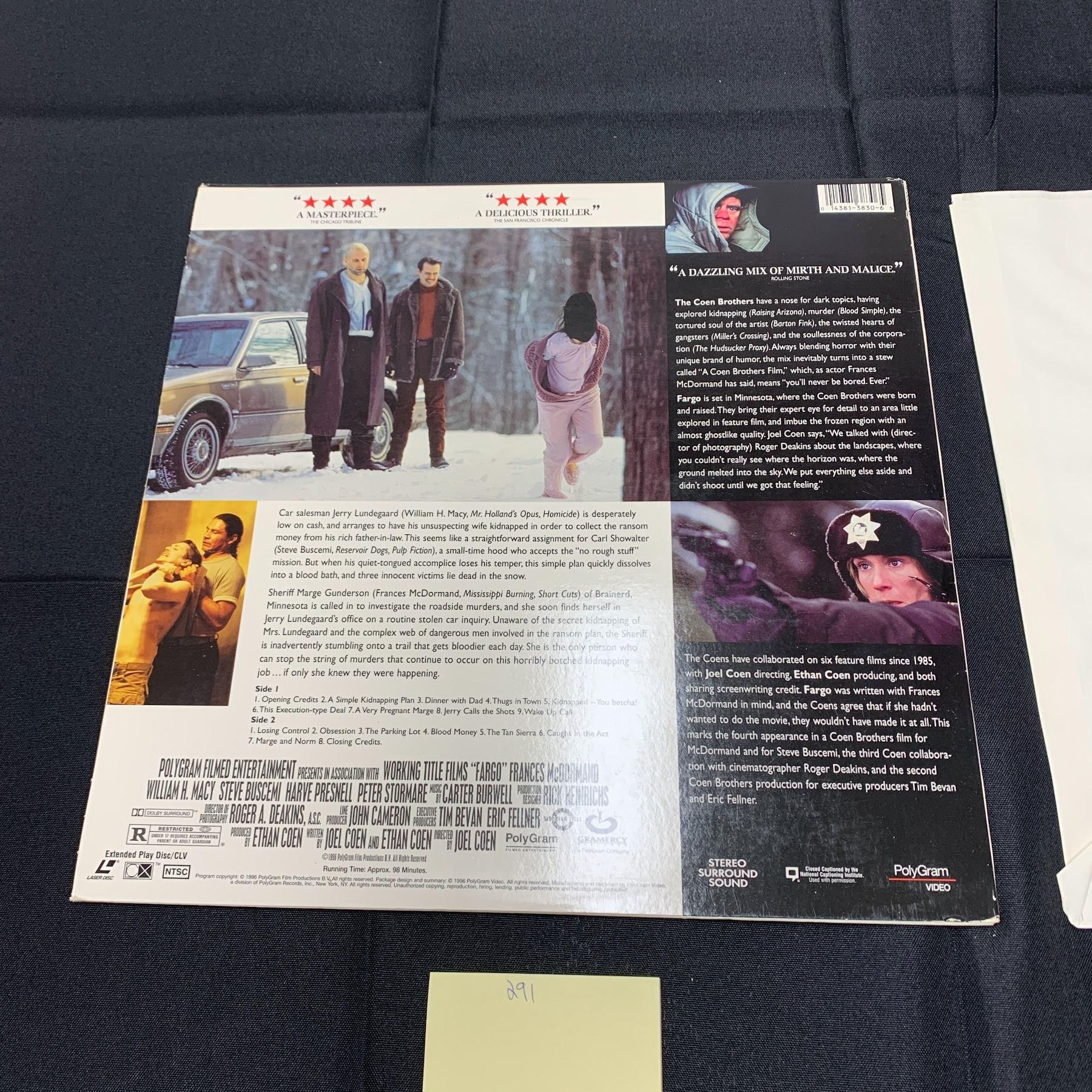 Fargo Laser Disc. We are a veteran owned company. Please look at the pictures carefully to determine what you believe the condition of collecitible is. We are currently accepting consignments. Email us a aeronhouse1994@gmail.com or visit our website, www.ahauctionhouse.com. We are currently seeking Star Wars related Collectibles to consign.