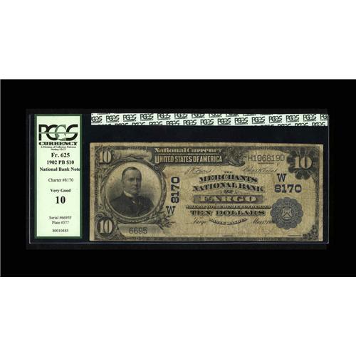 <B>Fargo, ND</B></I> - $10 1902 Plain Back Fr. 625 <B>The Merchants NB </B></I> Ch. #(W) 8170<BR>A $10 Plain Back from Cass County near the Minnesota border. <B>PCGS Very Good 10.</B></I>