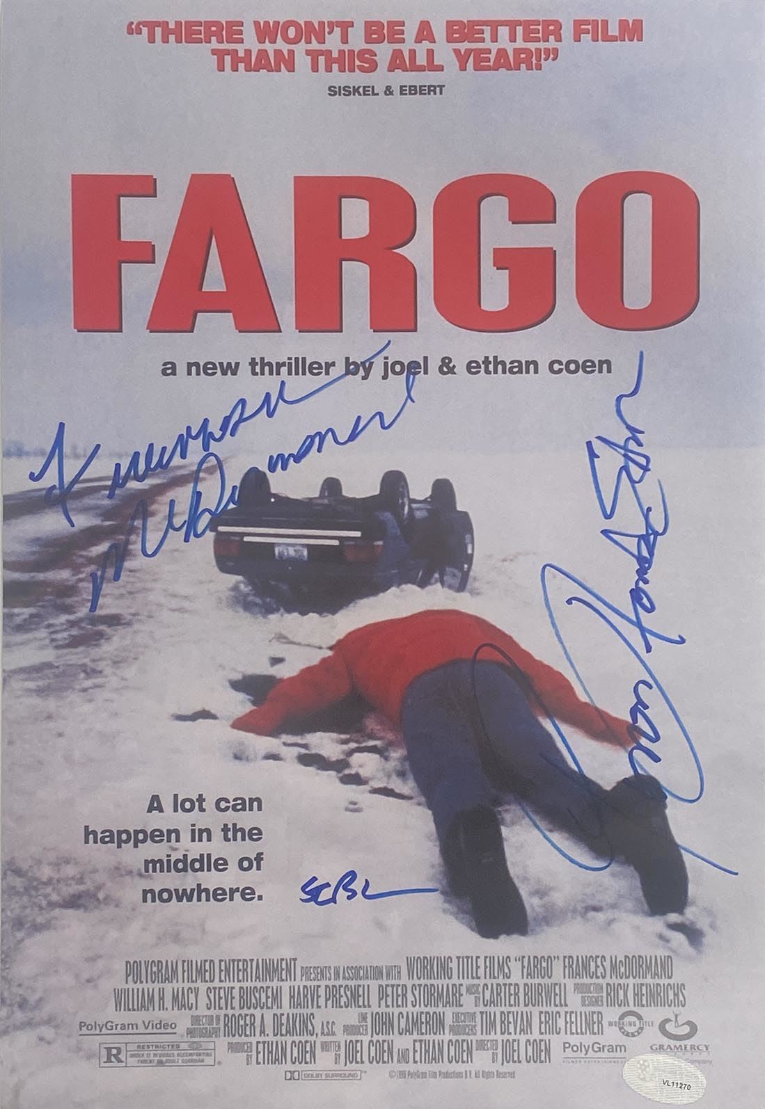 Frances McDormand, Peter Stormare, and Steve Buscemi.Reel Hollywood authenticated. 11x16 inches