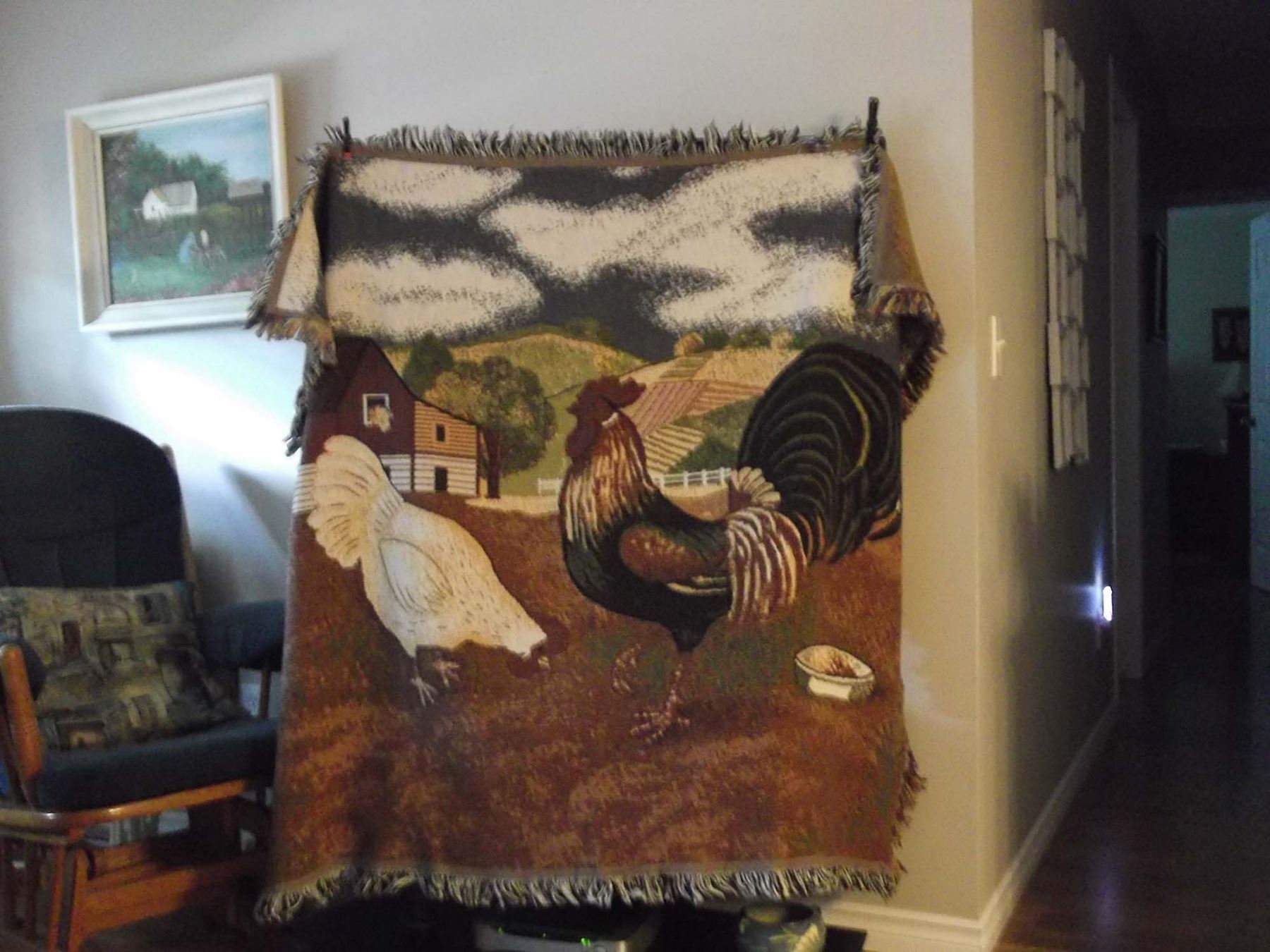Farm Scene Throw/Wall Hanging, 58"x48", Ex Condition