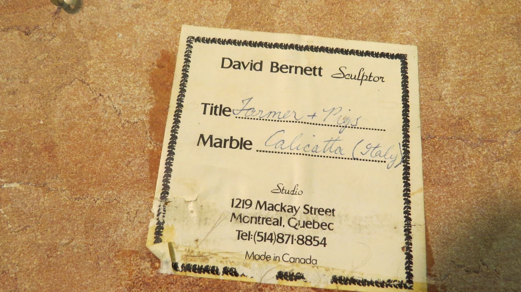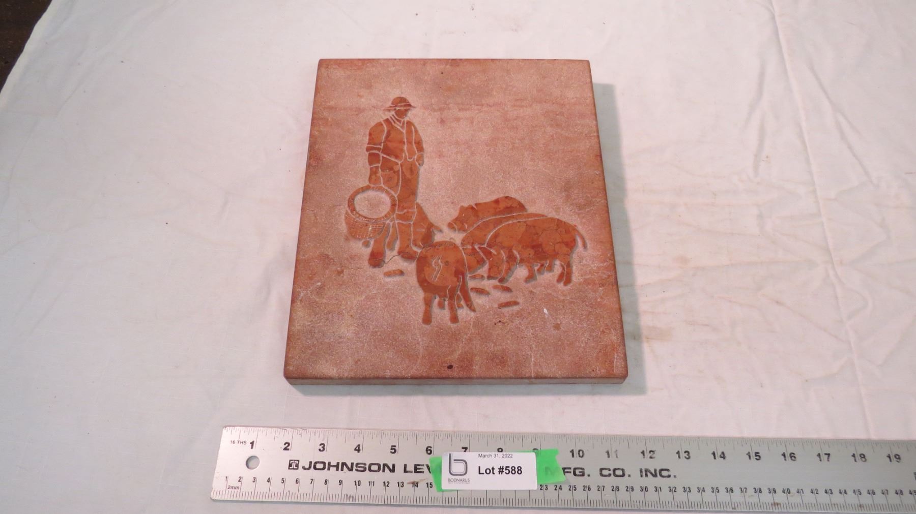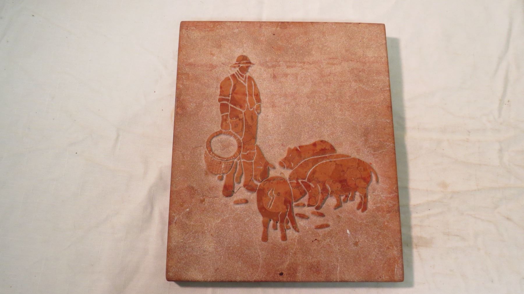 Farmer + pigs on marble - by David Bernett - 10x12