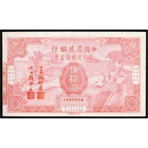 <style type="text/css"> body, td, th { font-family: Arial, Helvetica, sans-serif; font-size: 12px; color: #482424; margin: 0px; padding: 0px; } #header { background-image: url(http://www.bowersandmerena.com/ebay/images/template_v3_01.gif); clear: both; background-color: #590303; border-top-width: 2px; border-top-style: solid; border-top-color: #B38C4F; } #header #header_wrapper { height: 75px; clear: both; width: 800px; margin-right: auto; margin-left: auto; background-image: url(http://www.bowersandmerena.com/ebay/images/template_v3_03.gif); background-repeat: no-repeat; background-position: right; color: #F3EDCC; } #header #header_wrapper #header_logo { float: left; height: 75px; width: 444px; background-image: url(http://www.bowersandmerena.com/ebay/images/template_v3_02.gif); background-repeat: no-repeat; font-size: 10px; text-transform: capitalize; color: #B38C4F; } #header #header_wrapper #header_right { float: left; height: 75px; width: 356px; text-align: right; } #header #header_wrapper #header_right #headerLoginBtn { margin-bottom: 30px; } #header #header_wrapper #header_right input#txtSearch { color: #B49056; border: 1px solid #B49056; width: 175px; padding-top: 3px; padding-right: 3px; padding-bottom: 4px; padding-left: 3px; } #nav { height: 37px; background-image: url(http://www.bowersandmerena.com/ebay/images/template_v3_05.gif); clear: both; } #nav #nav_wrapper { height: 35px; width: 800px; margin-right: auto; margin-left: auto; border-left-width: 1px; border-left-style: solid; border-left-color: #B38C4F; } #nav #nav_wrapper a { padding-right: 15px; padding-left: 15px; border-right-width: 1px; border-right-style: solid; border-right-color: #B38C4F; height: 25px; padding-top: 10px; display: block; float: left; text-decoration: none; font-weight: bold; color: #5D0303; } #nav #nav_wrapper a:hover { color: #B38C4F; } #nav #nav_wrapper #search { float: right; padding-top: 7px; } #nav #nav_wrapper #search #txtSearch { font-family: Arial, Helvetica, sans-serif; font-size: 10px; text-transform: uppercase; color: #D2AE75; border: 1px solid #B38C4F; padding: 3px; } #content_bgd { background-image: url(http://www.bowersandmerena.com/ebay/images/template_v3_09.gif); background-repeat: repeat-y; background-position: center; padding-top: 15px; padding-bottom: 15px; background-color: #FBFBDB; } #content_wrapper { clear: both; height: auto; width: 800px; margin-right: auto; margin-left: auto; } .LotDetailWhite { line-height:normal; font-size:13px; font-family: arial,helvetica,sans-serif; color: White; font-weight: bold; } .LotDetailInformation { line-height:normal; font-size: 13px; font-family: arial,helvetica,sans-serif; } .LotDetailMessage { line-height:normal; font-size: 13px; font-family: arial,helvetica,sans-serif; color: red; } } tr.HeaderAuctionTitle td { color: #000000; font-weight: bold; padding: 2px; background-image: url(http://www.bowersandmerena.com/ebay/images/template_v3_05.gif); background-repeat: repeat-x; border-bottom-width: 1px; border-bottom-style: solid; border-bottom-color: #B38C4F; } table.AuctionSummary a, table.AuctionSummary a:link, table.AuctionSummary a:visited { color: #0000FF; text-decoration: none; } } td.tableHeaderLeft { border-left-width: 1px; border-left-style: solid; border-left-color: #B38C4F; } td.tableHeaderRight { border-right-width: 1px; border-right-style: solid; border-right-color: #B38C4F; } td.tableCellMiddle { border-left-width: 1px; border-left-style: solid; border-left-color: #B38C4F; border-right-width: 1px; border-right-style: solid; border-right-color: #B38C4F; padding: 5px; } tr.footer td { border-top-width: 1px; border-top-style: solid; border-top-color: #B38C4F; } </style> </head> <body> <div id="header"> <div id="header_wrapper"> <div id="header_logo"> </div> <div id="header_right"> </div> </div> </div> <div id="nav"> <div id="nav_wrapper"> <a href="http://www.bowersandmerena.com">Our eBayLive Auctions</a> <a href="#PaymentInfo">Payment Information</a> <a href="#ShippingInfo">Shipping Information</a> <a href="#About">About Bowers and Merena</a> </div> </div> <div id="content_bgd"> <div id="content_wrapper"> <table width="100%" border="0" cellpadding="5" cellspacing="0" class="AuctionSummary"> <tbody> <tr class="HeaderAuctionTitle" style="height: 25px;"> <td align="left" class="tableHeaderLeft" > </td> <td align="center" class="tableHeaderRight"> <span style="font-size: large;">Lot #211. China--Republic. Farmers Bank of China, 1943 Issue.</span> </td> </tr> <tr> <td colspan="3" class="tableCellMiddle"> 1943, 50 Yuan, P-481, Choice Unc. condition, rare note in this condition and possibly the finest known.