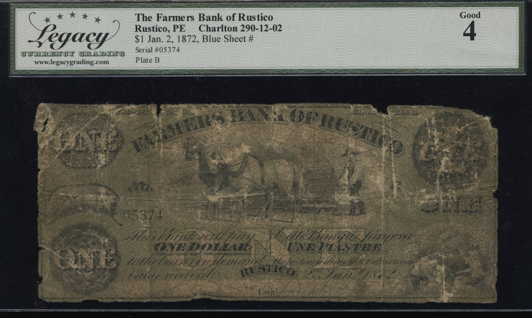 Farmers Bank of Rustico $1, 1872, Prince Edward Island