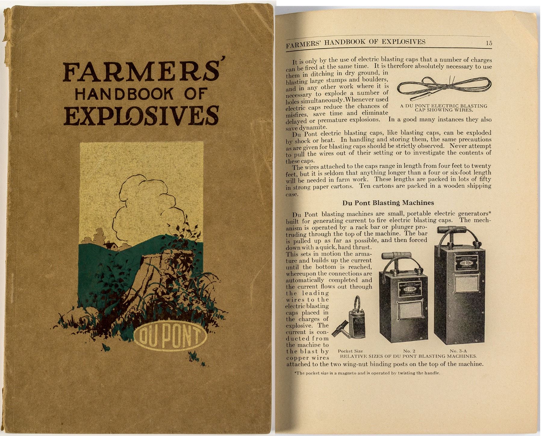 Softcover, copyright 1925 by DuPont, 6 x 9 inches, 101 pages, with photographs and drawings explaining uses for explosives by farmers. State: City: HWAC#: 47456 Date: