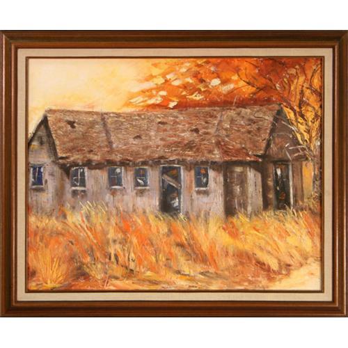 </font></strong>This painting is definitely one of a kind, painted in an impressionistic fashion by the inspired Canadian artist, Willa Smarr. The painting is of a dominant aged farmhouse that is surrounded by the vibrant splendor of autumn. There is absolutely nothing timid amount this piece. The colors, the brushstrokes, and the thickness of the paint are all very bold. The roof has an awesome texture, as well as the brush in the foreground. Based upon all these elements working together, the painting is just teaming with life. The smooth and beautiful walnut colored wood frame, with its off-white inner liner, was the perfect choice since it harmonizes so well with the rich brown tones in the painting. Including the frame?s dimensions, this lively piece of art measures 23? x19? in totality and bears the artist?s signature in the lower right hand corner. This painting will definitely cheer up any space and is well worth its weight in gold.</font>