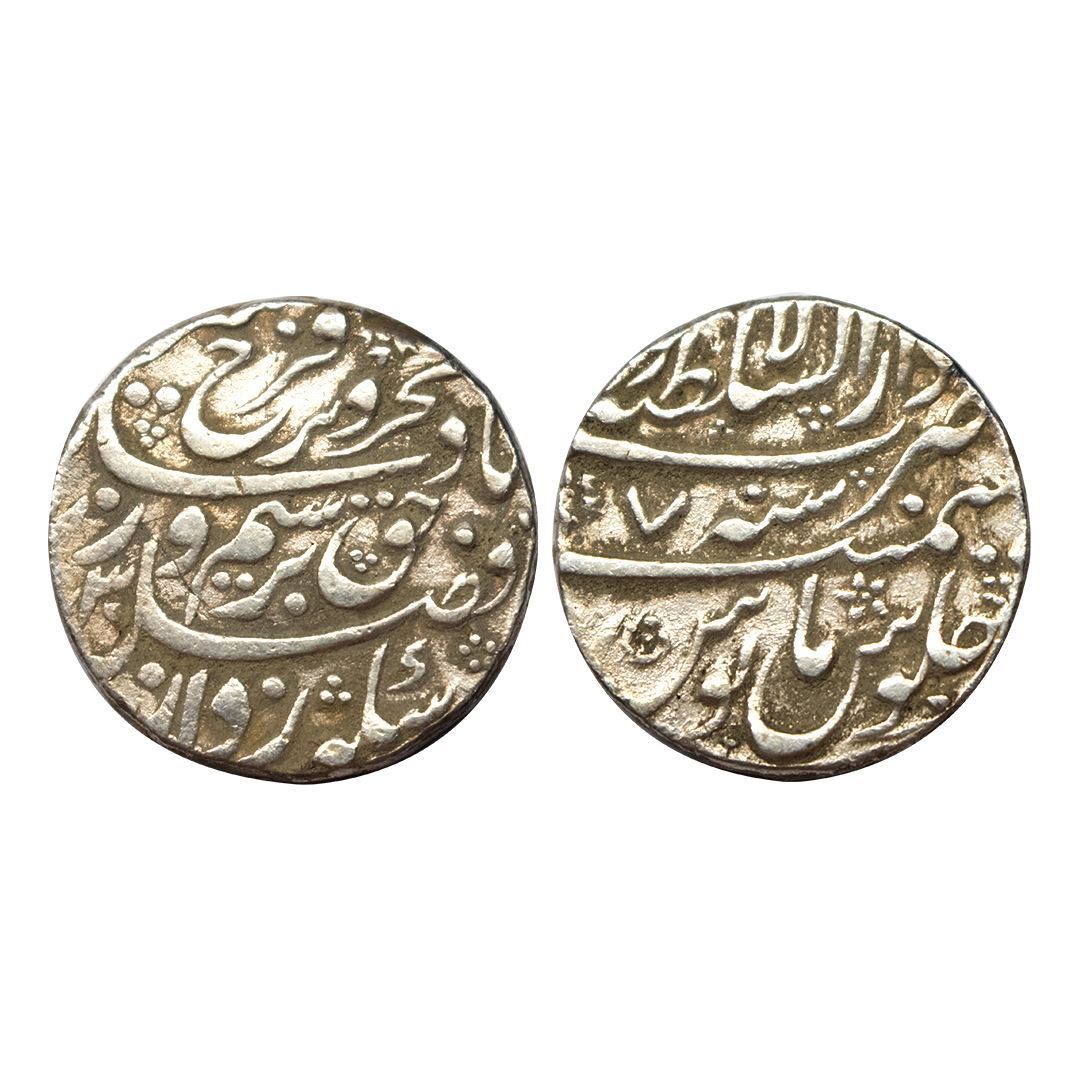 Farrukhsiyar, Rupee, Lahore Dar us Sultanate Mint, complete Mint name in the top line on rev, AH 1130, RY 7. Test Marks, Very Fine+.