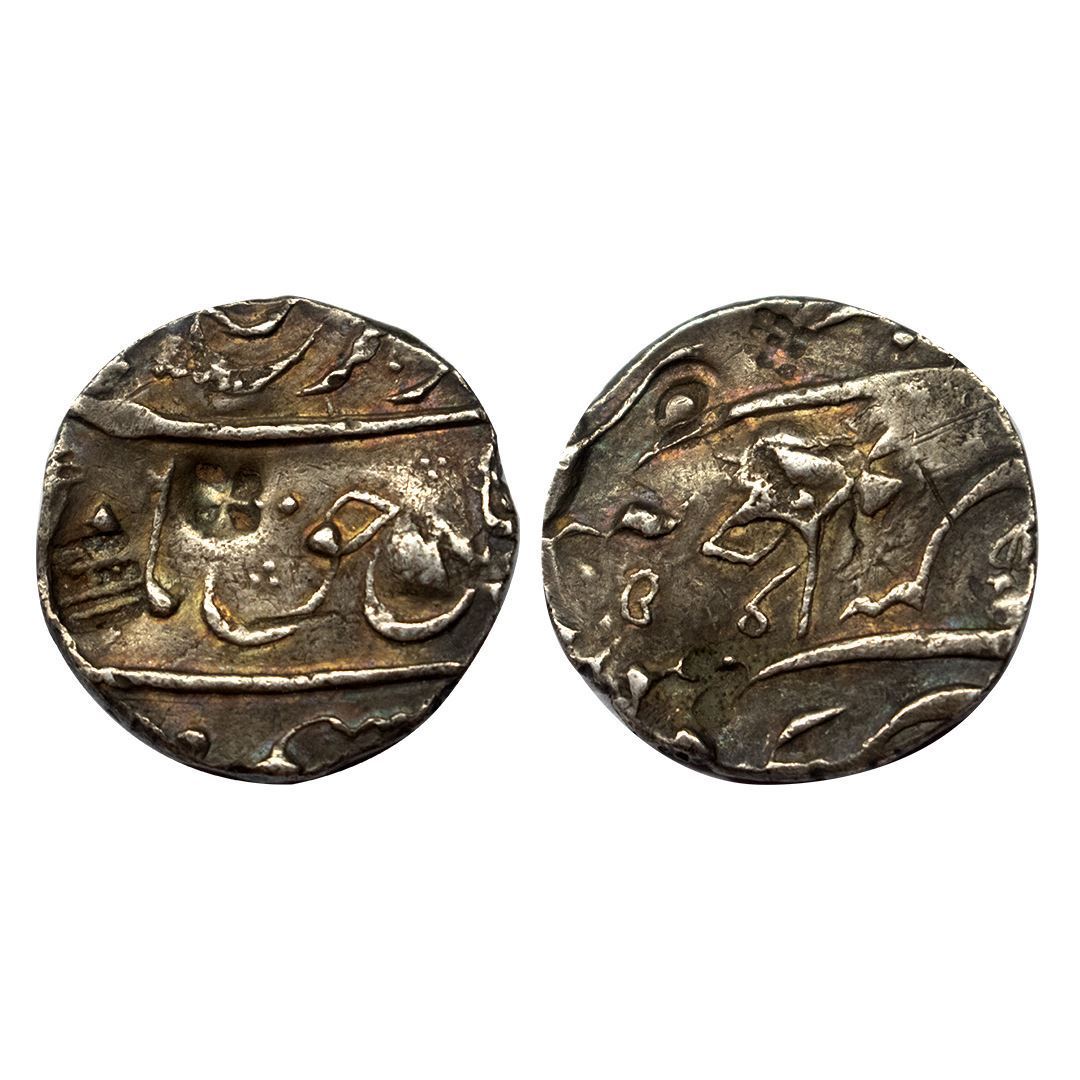 Farrukhsiyar, ½ Rupee, Surat, Mint name in the bottom line on rev, Nagari letter Maa Counter-marked on obv RY 5. About Very Fine+.