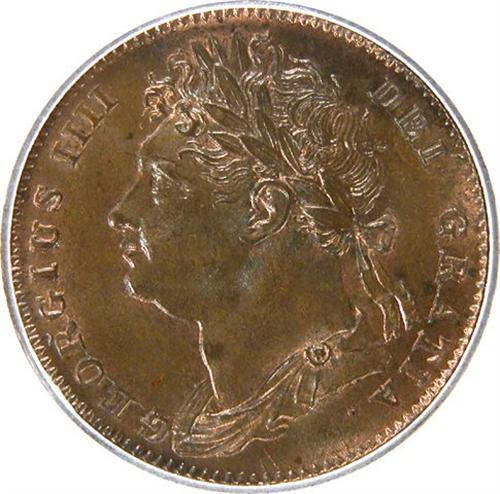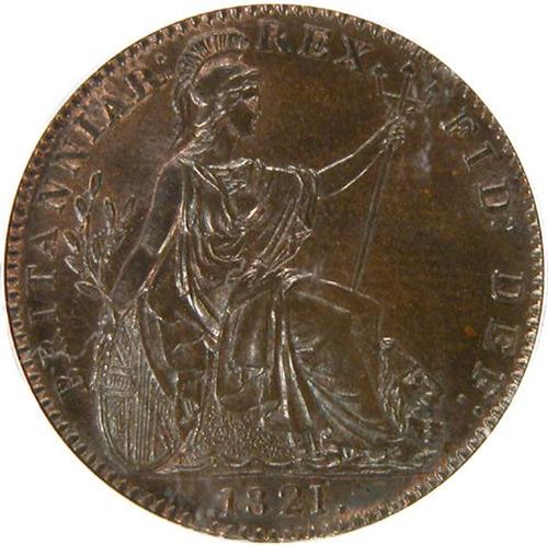 Farthing 1821 Dot ICG MS-64 Red and Brown. Beautiful glossy surfaces with traces of red