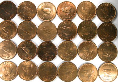 Farthing Set 1937 to 1956, including two of 1941, 1951, 1953 and 1955. Red and Brown Uncirculated to Very Choice Red and Brown Uncirculated, mostly Choice Red and Brown. Total twenty-four pieces