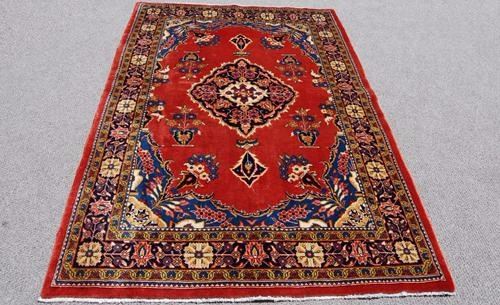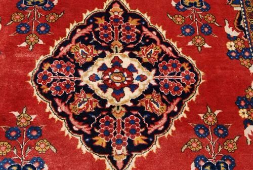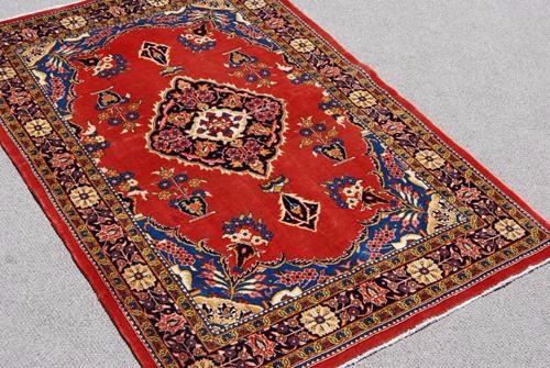 Absolutely fascinating hand woven Viss design Persian Rug. Color navy blue, red, ivory, blue, black - multi-colored knot, the primary color is red, hand knotted foundation cotton pile fine wool. A very rare Rug, as an authentic Persian Viss at this Size is extremely hard to find. Country of Origin: Iran. Size: 5 feet 2 inches X 7 feet 8 inches.