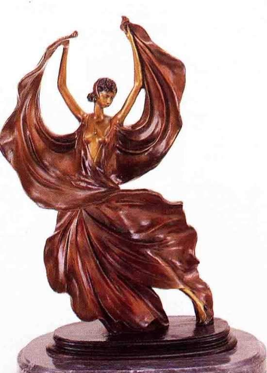 "Fascination" Bronze Sculpture Inspired - Icart - Beautiful Color Patina - Mounted On A Fine Italian Marble Base - Beautifully Detailed - Signed - Mint Condition - 21"H X 10"W - Lost Wax Cast Bronze