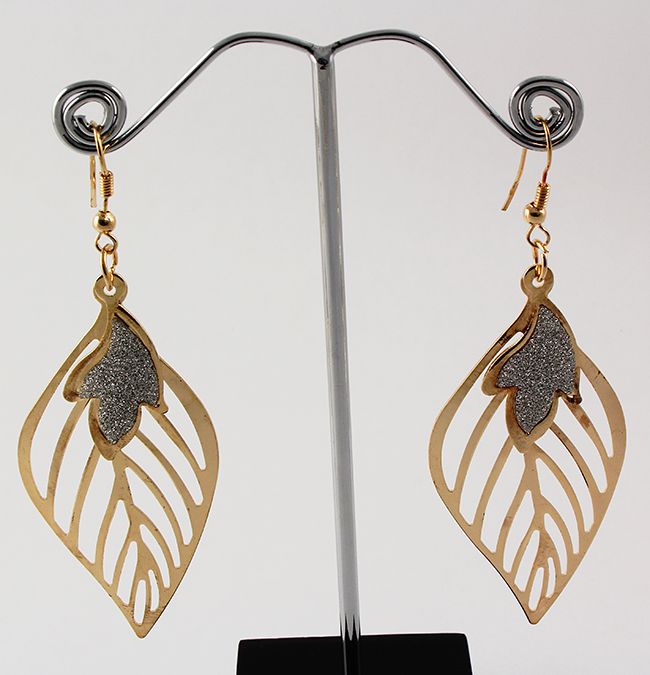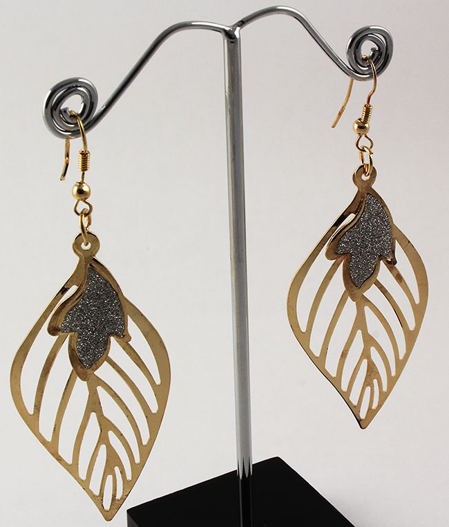 Fashion Gold Plated Leaf Dangle Hook Earring **|**|** New Fashion Jewelry with Silver Glittering Gold Plated Big Leaf Dangle Hook Earring ; MSRP: $0