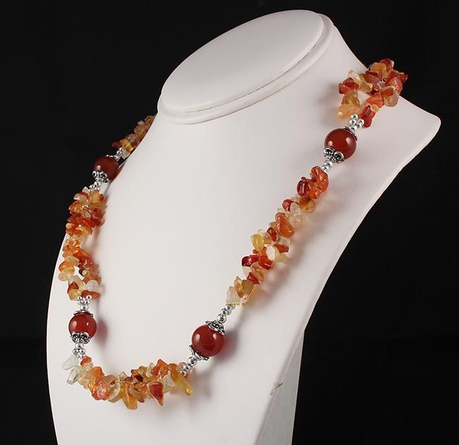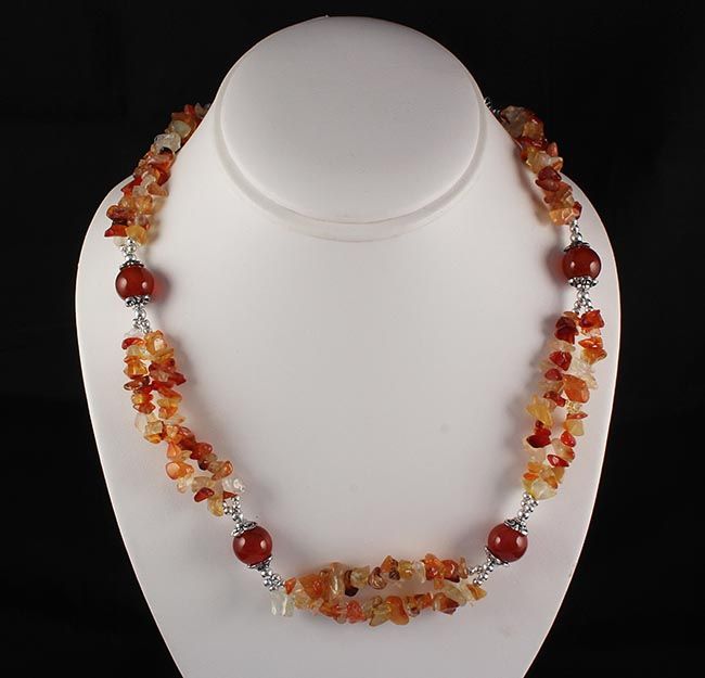 Fashion Jewelry Carnelian Chip Beads Necklace **|**|** Fashion Jewelry Carnelian Chip Beads Double Row Design Necklace with Round Bead Connector ; MSRP: $100