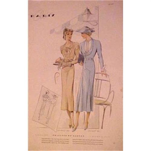 Fashion Plate from The PARIS CHIC Magazine #447 of april 1937 Printed by Les Editions Leon Claude, S.A. SIZE: 9 1/4 by 14 1/2 inches.