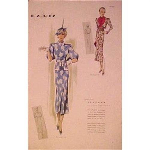 Fashion Plate from The PARIS CHIC Magazine #447 of april 1937 Printed by Les Editions Leon Claude, S.A. SIZE: 9 1/4 by 14 1/2 inches.