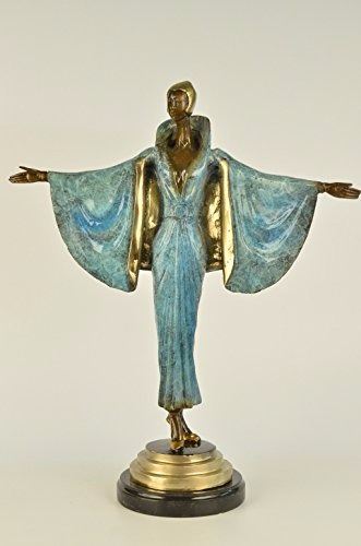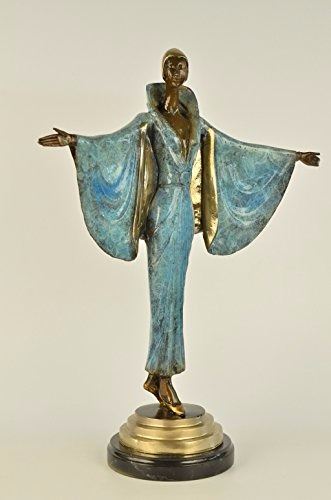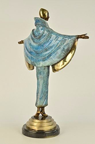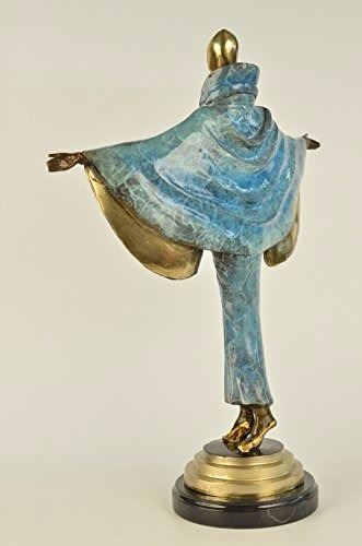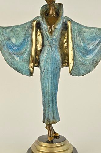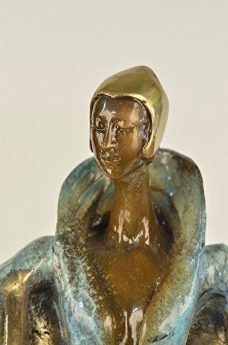She stands at the end of the runway. The camera bulbs flash as she spreads her arms to showcase her fashion forward outfit. She wears a long golden brown patina dress that cinches into her narrow waistline. The collar of the vintage dress is high, bringing back the days of old Hollywood. A black shawl is draped over her shoulders. The rich patina of the shawl gives it the appearance of ripples from movement. She shuts her eyes and basks in the attention and glamour of center stage. She was cast using the Lost Wax Method and mounted on a marble base. Bronze Dimensions with Marble Base: Height 19 X Width 15 inches. Weight: 15 LBS. Please Note: This is a reproduced bronze sculpture from the original molded and signed. This featured bronze sculpture is a recast after the original, and has been done recently. This 100% bronze sculpture is an abstract piece certain to be a conversation piece.
