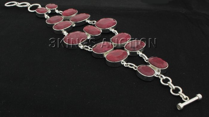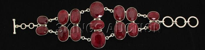 Fashion Silver 279.00ctw Oval Ruby Beryl Bracelet **|**|** Heavy Cut Handmade Silver Bracelet with Natural Oval Ruby Gemstone size: 8.0 inches; color: Red; Stone Family: Beryl ; MSRP: $3100