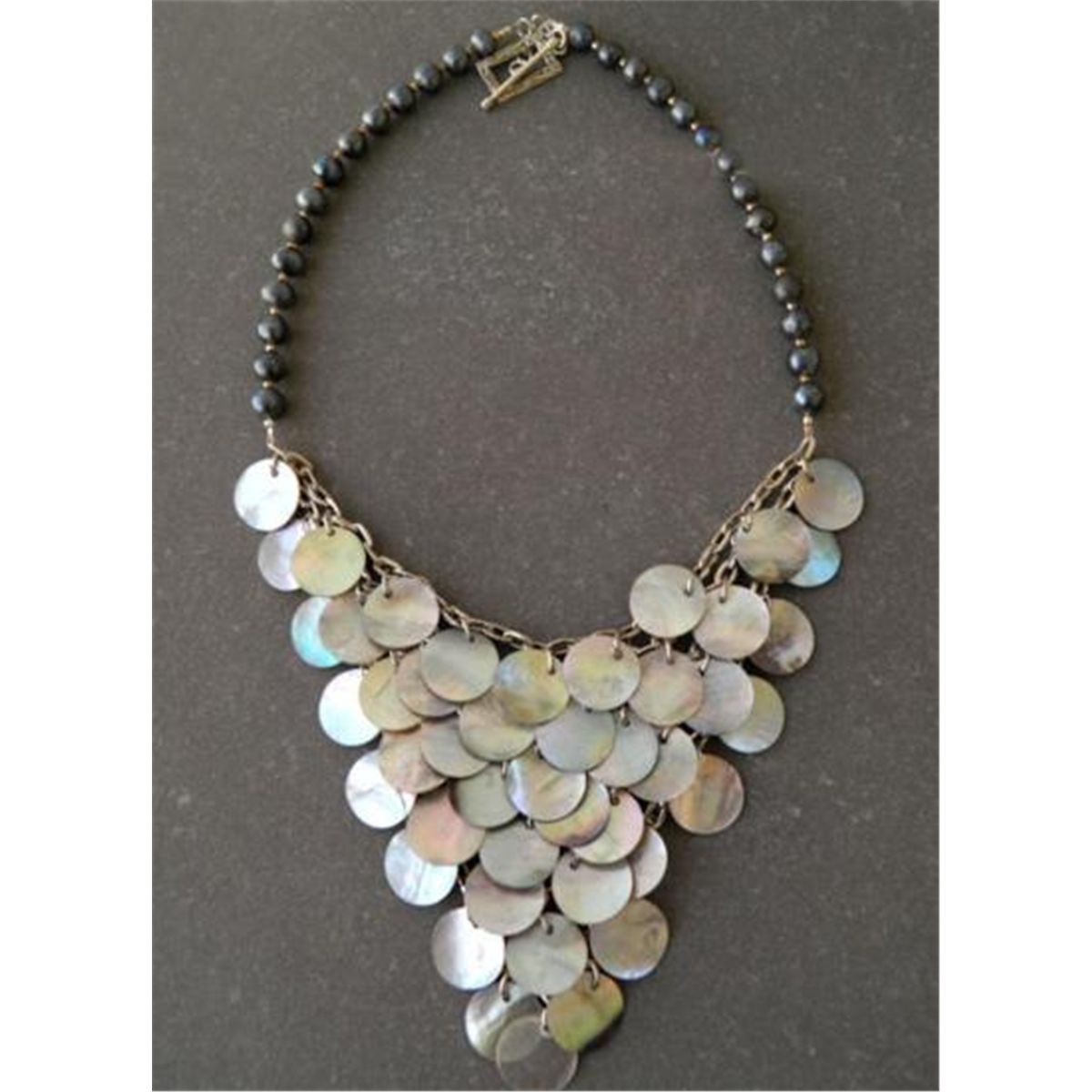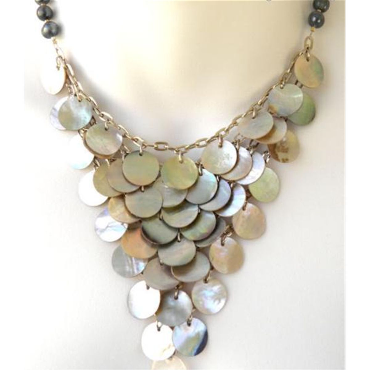 Fashionable Mother of Pearl Cascading shell and Pearl Necklace, Necklace measures approx 17.5in length