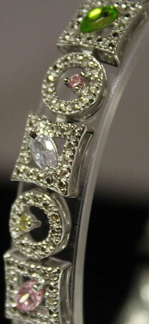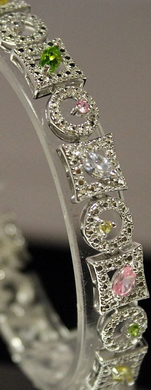 Sterling Silver Lab Multi Gem Stones Bracelet. Pink, Golden & White Sapphires & Peridots twt approx 20 cts.