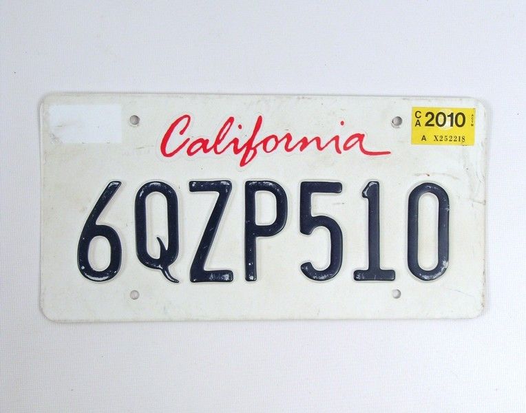 From "Fast Five" (2011), the fifth in the incredible "The Fast and the Furious" franchise, this is a plastic California license plate (6QZP510) with a 2010 registration tag (A-X252218), used in the production.