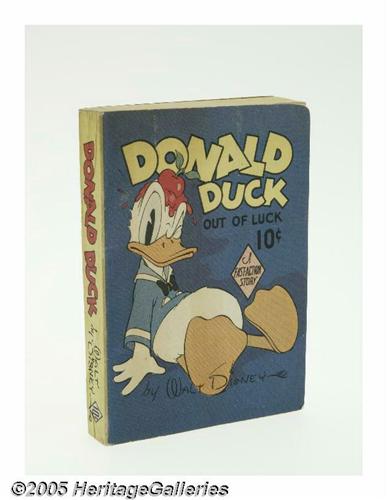 <B>Fast-Action Story #nn Donald Duck Out of Luck (Dell, 1940) Condition: FN.</B></I> A 196 page <I>Fast-Action Story</B></I>, with an advertisement for <B>Four Color</B></I> #4 on the back cover. Art by Al Taliaferro. Measures 4" x 5.5". Rounded top right corner, and a horizontal crease on the front cover. Overstreet 2005 FN value = $160. <I>From the Larry Jacobs Collection.</B></I>