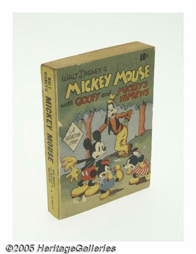 <B>Fast-Action Story #nn Mickey Mouse with Goofy and Mickey's Nephews (Dell, 1938) Condition: VG/FN.</B></I> <I>Fast-Action Story</B></I> softcover containing 196 pages with art by Floyd Gottfredson. Measures 4" x 5.5". Some edge wear and slight chipping. One of the hardest to find Fast Action books. Overstreet 2005 FN value = $150. <I>From the Larry Jacobs Collection.</B></I>