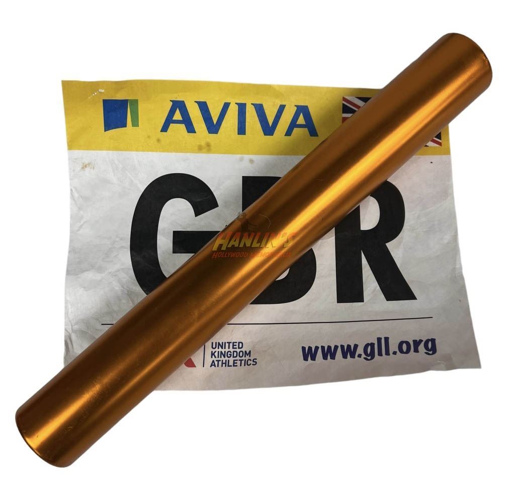 Fast Girls (2012) - Lisa's (Lily James) Orange Metal Relay Baton and Paper Team Bib.