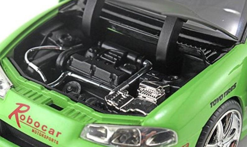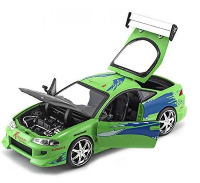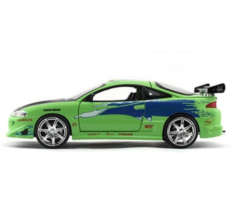 Relive the action-packed scenes from the franchise built on speed with Brian's Mitsubishi Eclipse 1:24 Scale Die-Cast Metal Vehicle that's ready for action! You call the shots as you lead the team on their crusade with these vehicles as seen in the Fast and Furious movie. Measures about 8-inches long.