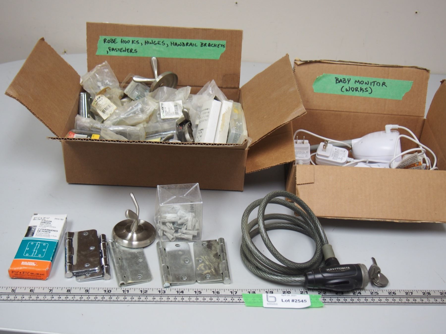 Fasteners, Hooks, Door Hardware, Kryptonite Bike Lock with Key, and Baby Monitor