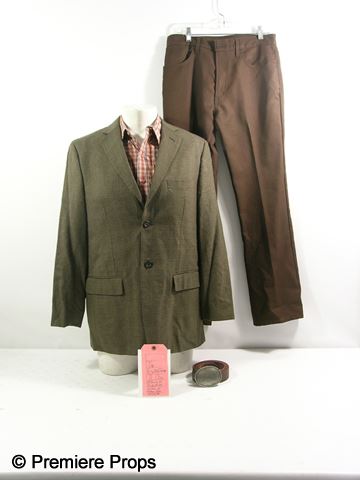 Straight from the set of Faster, this is Cop (Billy Bob Thornton) screen worn, hero, brown, blue, and khaki hounds tooth, two button three pocket 'Pronto Uomo' blazer, (size 40R) red, black, white, and khaki plaid, 2 pocket, red snaps 'Rasistol' cowboy style shirt, (size M) dark brown boot cut 'Levis' pants, (size 34/32) and red/brown aged leather with nickle buckle belt. Includes wardrobe tag!