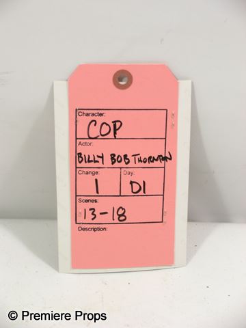 Straight from the set of Faster, this is Cop (Billy Bob Thornton) screen worn, hero, gray cord two button with black elbow patches, cowboy stile 'Circle S' blazer, (size 40) black long sleeve snap front 2 patch pockets with flap, cowboy style 'Panhandle Slim' shirt, (size M 'Hero' written inside) and charcoal gray four pocket zipper fly 'Wrangler' jeans. (size 34x32) Includes wardrobe tag!