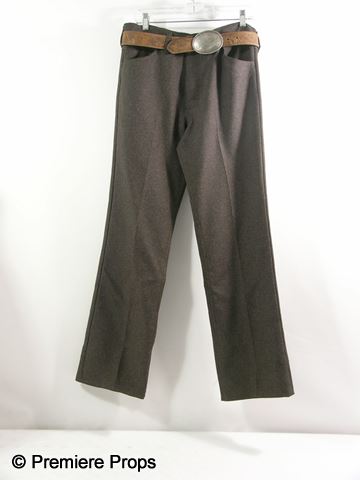 Straight from the set of Faster, this is Cop (Billy Bob Thornton) screen worn, hero, gray cord two button with black elbow patches, cowboy stile 'Circle S' blazer, (size 40) black long sleeve snap front 2 patch pockets with flap, cowboy style 'Panhandle Slim' shirt, (size M 'Hero' written inside) and charcoal gray four pocket zipper fly 'Wrangler' jeans. (size 34x32) Includes wardrobe tag!