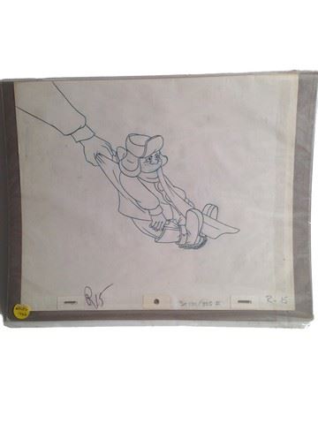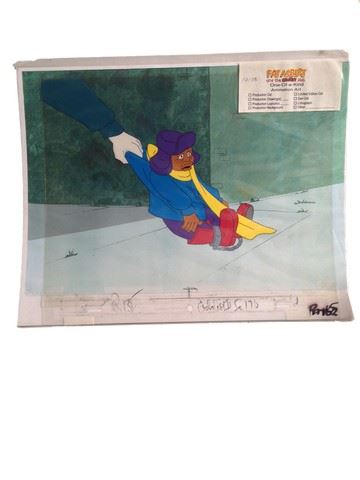 "Fat Albert" Animation Cel (featuring "Russell" being dragged off by the police / includes original hand drawn character sketch / Filmation Studios / 1972 / 12" x 9") (NOT Matted)