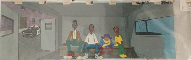 "Fat Albert" Animation Cel (featuring "" Fat Albert") and "The Cosby Kids", original hand painted production cel.(30x12)
