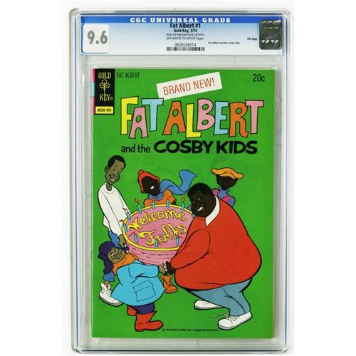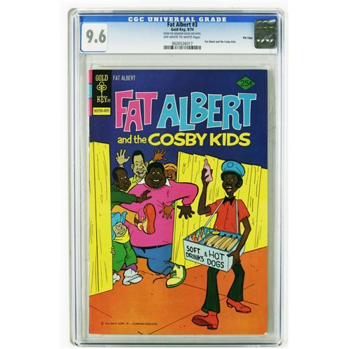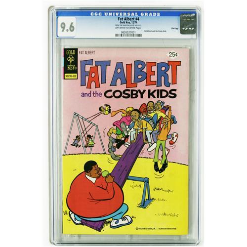 <B>Fat Albert File Copies CGC Group (Gold Key, 1974-79).</B></I> Hey hey hey, all issues in this group are CGC 9.6 except for one 9.8 and one 9.4 (noted below), and all have "off-white to white" page quality unless otherwise noted. Included here are #1 (CGC census 4/06: 3 in 9.6, none higher), #3 (4 in 9.6, none higher), #4 (1 in 9.6, none higher), #17 (12 in 9.6, none higher), #18 (3 in 9.6, 5 higher), #20 (CGC 9.4; 1 in 9.4, 4 higher), #21 (White pages; 2 in 9.6, none higher), #25 (6 in 9.6, none higher), and #29 (1 in 9.8, none higher). Overstreet 2006 NM- 9.2 value for group = $201. <I>From the Random House Archives.</B></I>
