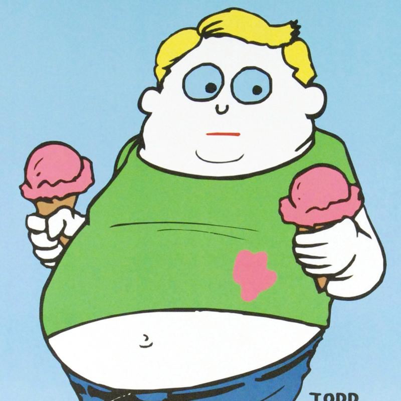 "Fat Kids Are Harder to Kidnap" is a fine art litho poster by Todd Goldman! Measures approx. 24" x 36" (poster).