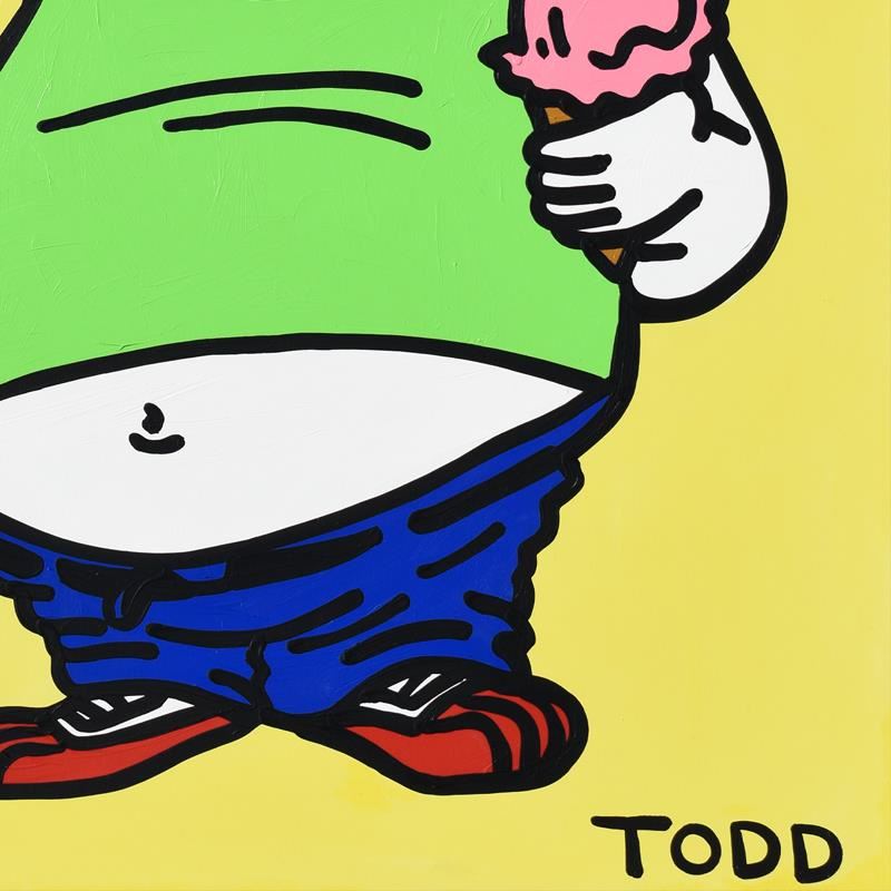 "Fat People" is an original acrylic painting on gallery wrapped canvas by Todd Goldman, hand signed by the artist. Includes Letter of Authenticity. Measures approx. 48" x 60" (image). Due to the way this piece was stored there may be minor wear or signs of age (such as wear on the corners) but the piece is in overall good condition.