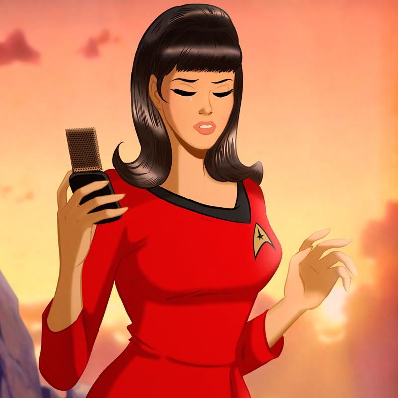 Created for the Star Trek 50th Anniversary Art Exhibition, "Fate of the Red Shirt" by Des Taylos is a chromatic pigment ink limited edition on archival paper. The piece is numbered, hand-signed by the artist, and comes with a Certificate of Authenticty. Measures approx. 22" x 34" (image).