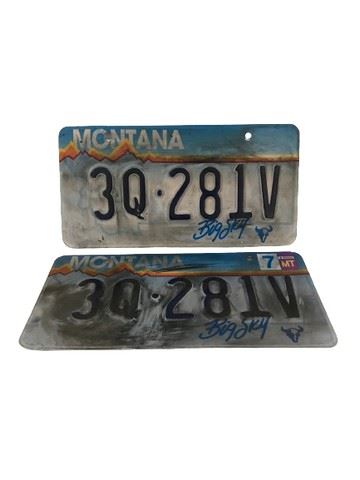 Bill Long (Mel Gibson) screen used Montana license plates.Production distressed. Includes studio wardrobe tag.Labeled Bill on the backs.