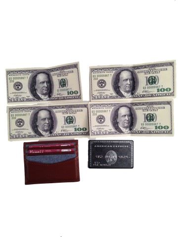 Kyle (Owen Wilson) screen used, hero, wallet with two driving licenses and a "American express", and four 100 dollar bills, fake.(4x3).